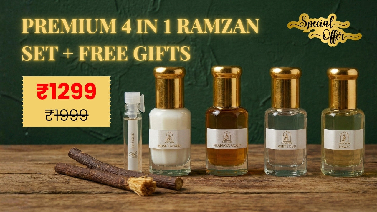 4-in-1 Ramzan Attar Set (4 Alcohol-Free Attars + 2 Free Gifts)
